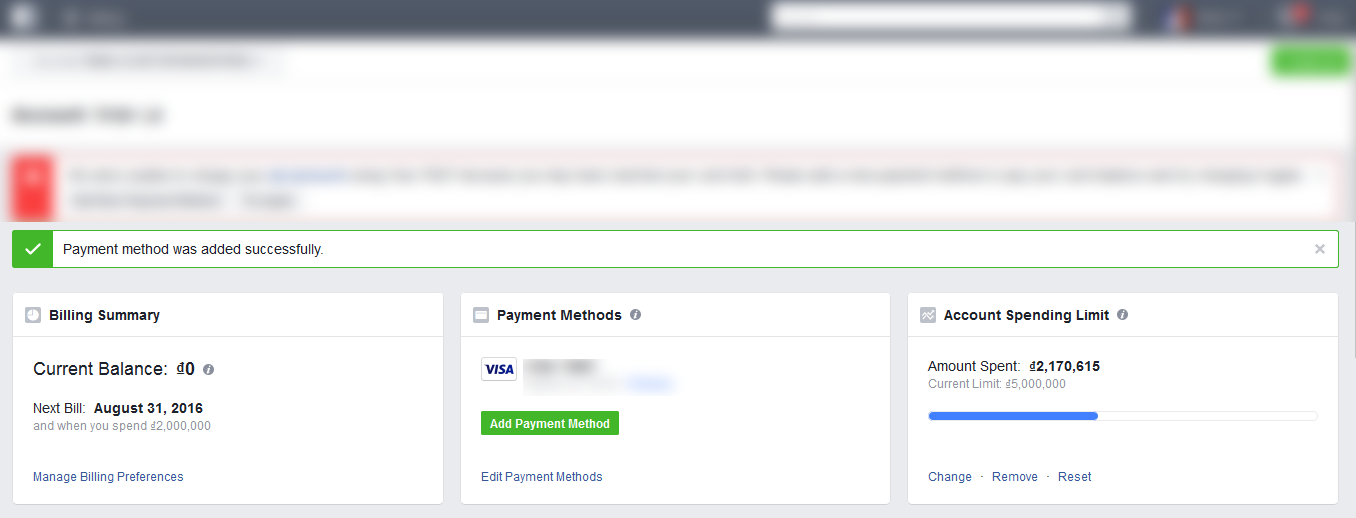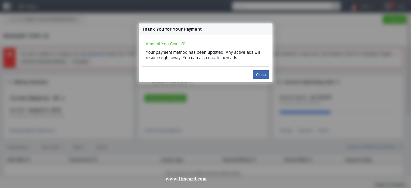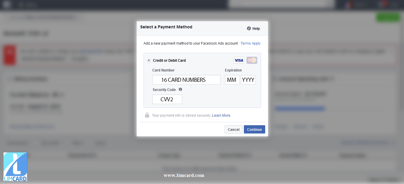Step 2. Add Visa LIMCARD into your facebook ads account