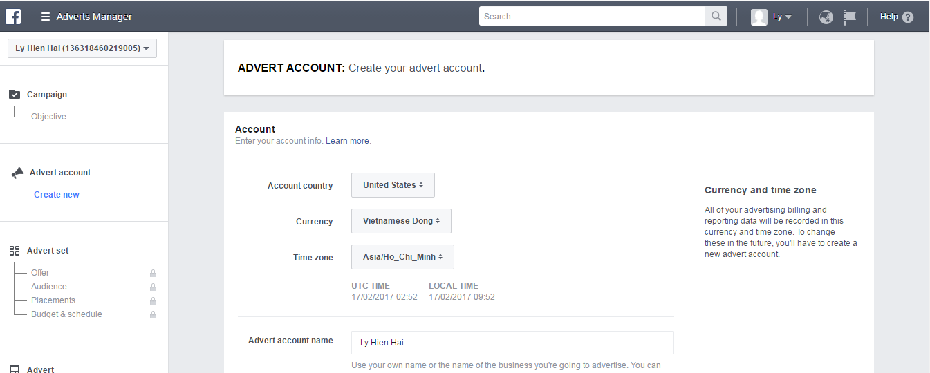 After adding the card successfully, you can start creating the advertising campaign on Facebook ads.